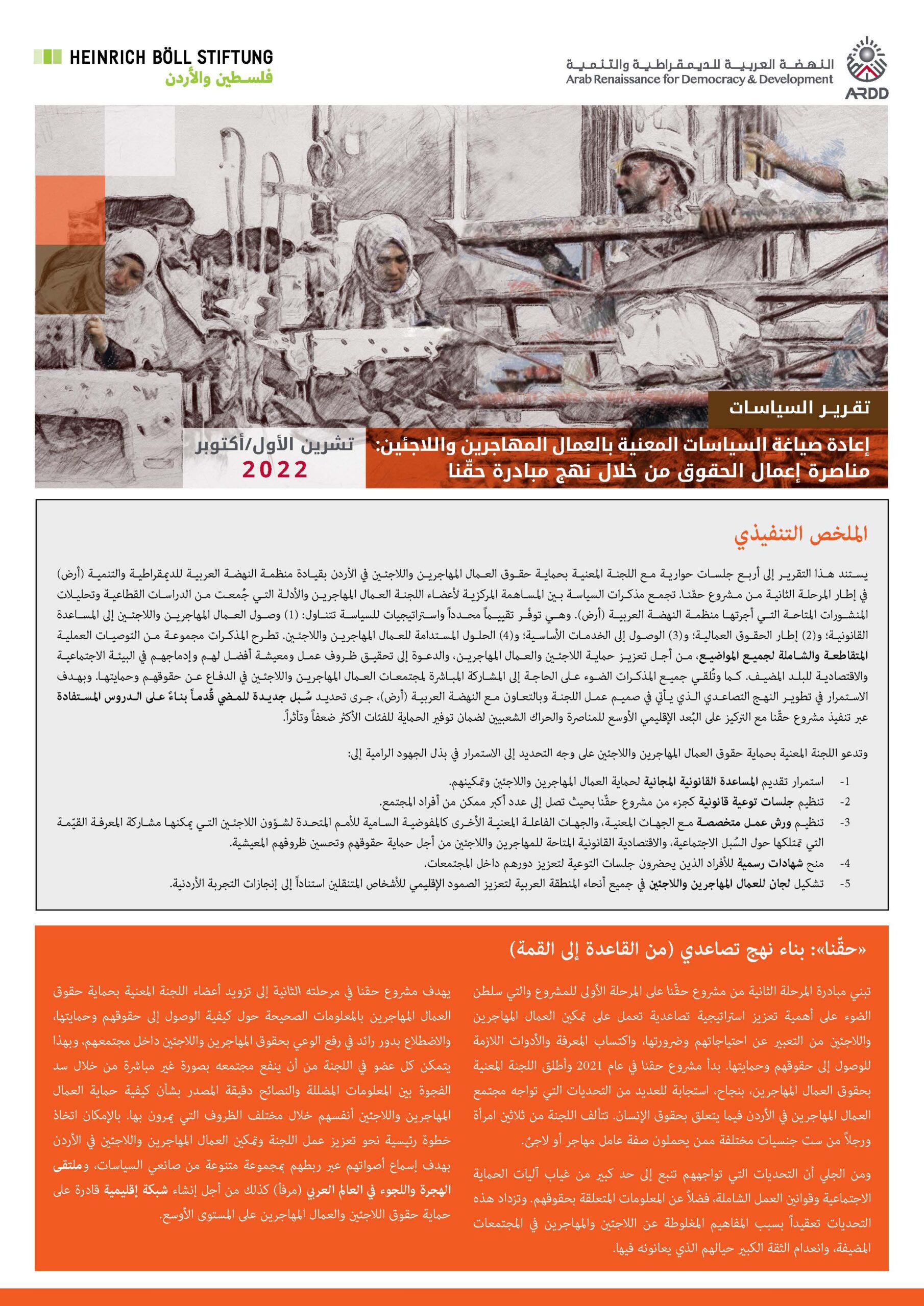 11/09/22إعادة صياغة سياسات المعنية بالعمال المهاجرين واللاجئين: مناصرة إعمال الحقوق من خلال نهج مبادرة حقّنا