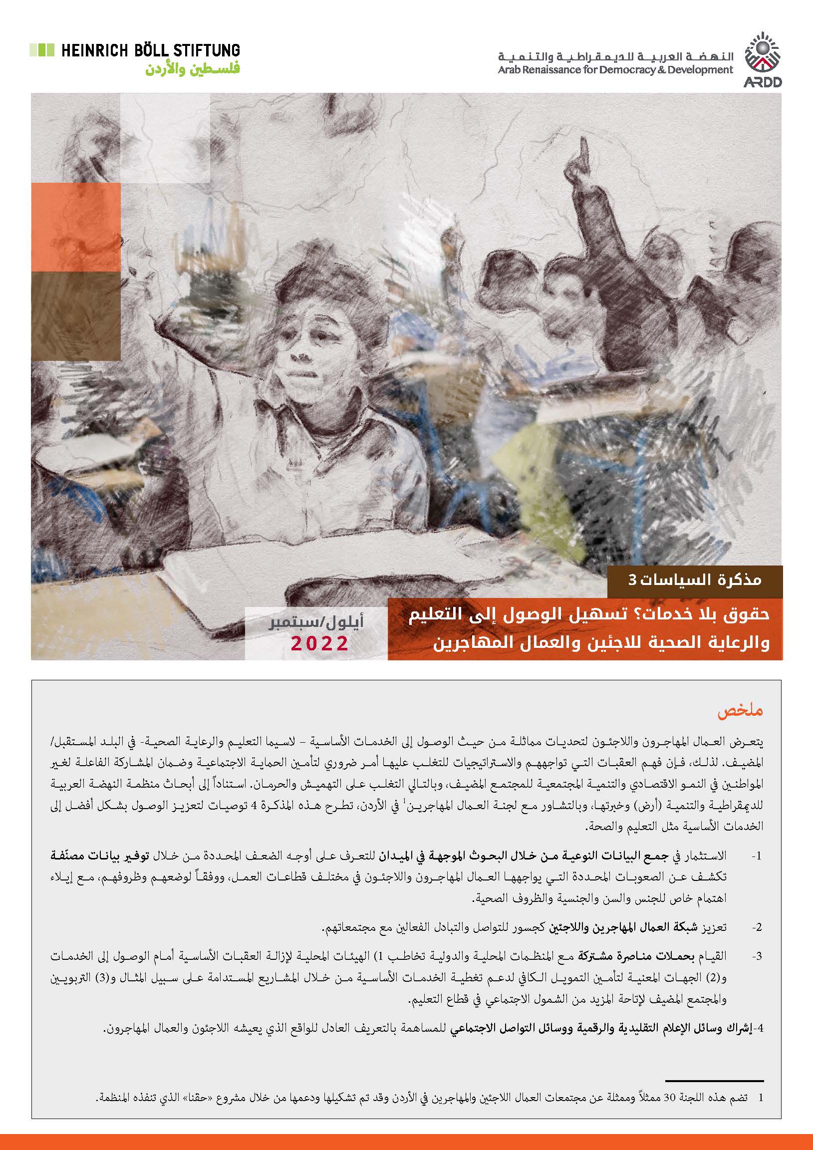 04/10/22حقوق بلا خدمات؟ تسهيل الوصول إلى التعليم والرعاية الصحية للاجئين والعمال المهاجرين مذكرة سياسات 3