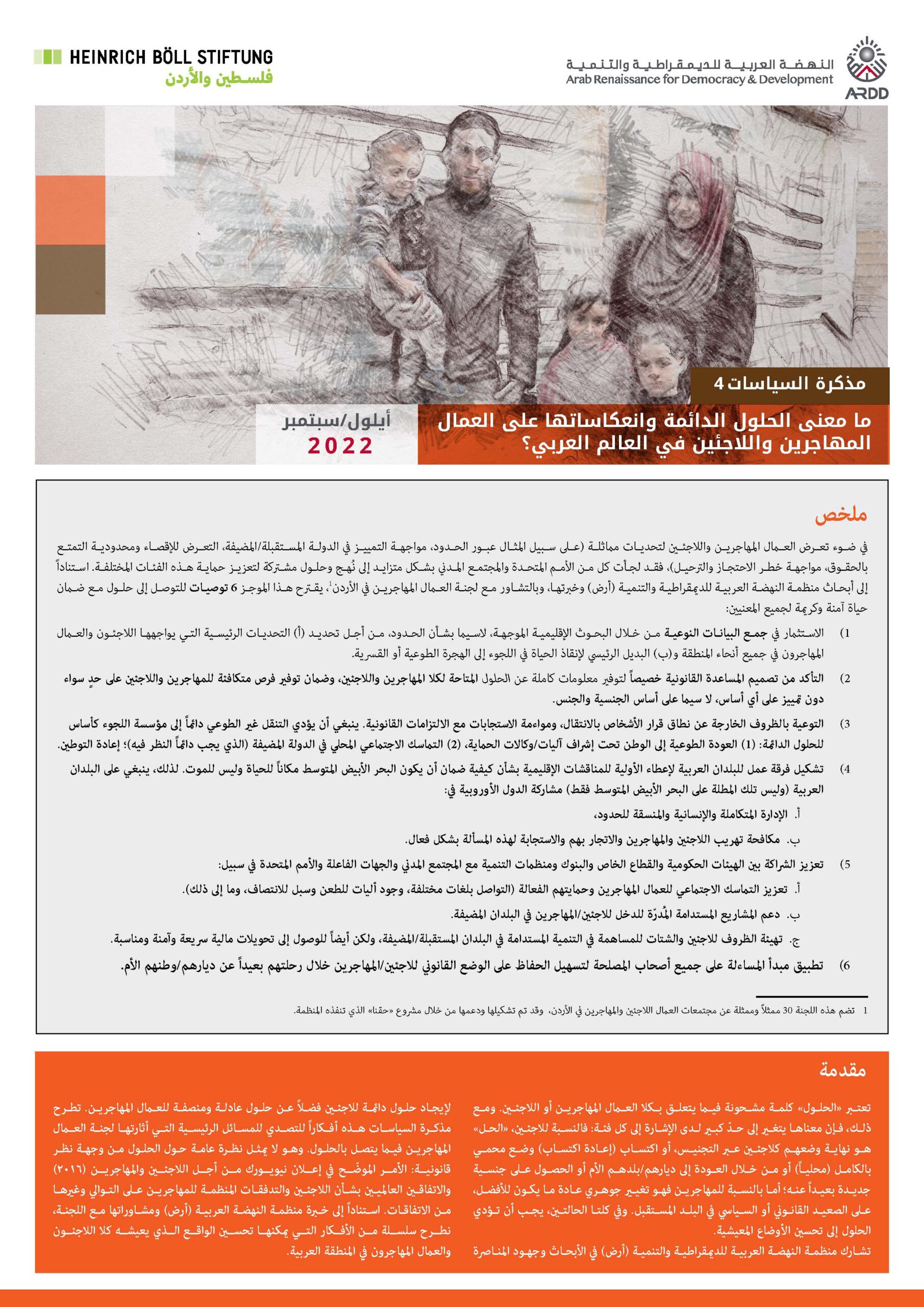 04/10/22ما معنى الحلول الدائمة وانعكاساتها على العمال المهاجرين واللاجئين في العالم العربي؟ مذكرة 4/4