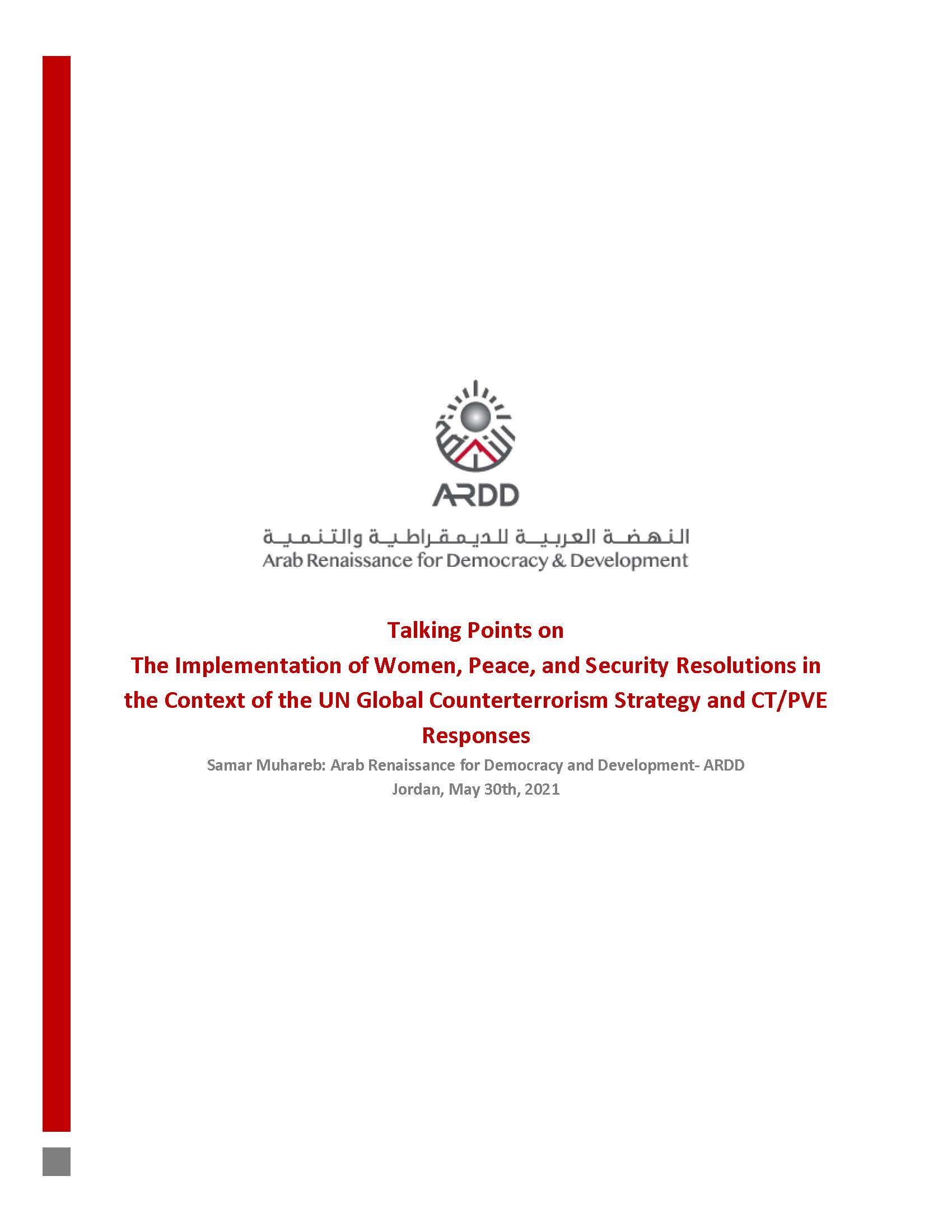 28/06/22The Implementation of Women, Peace, and Security Resolutions in the Context of the UN Global Counterterrorism Strategy and CT/PVE Responses Talking Points by ARDDs Director Samar Muhareb