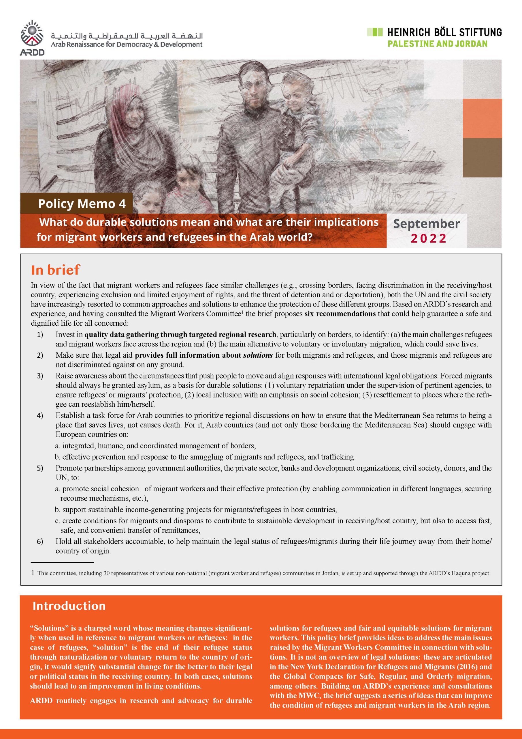 04/10/22What do durable solutions mean and what are their implications for migrant workers and refugees in the Arab world? MEMO 4/4