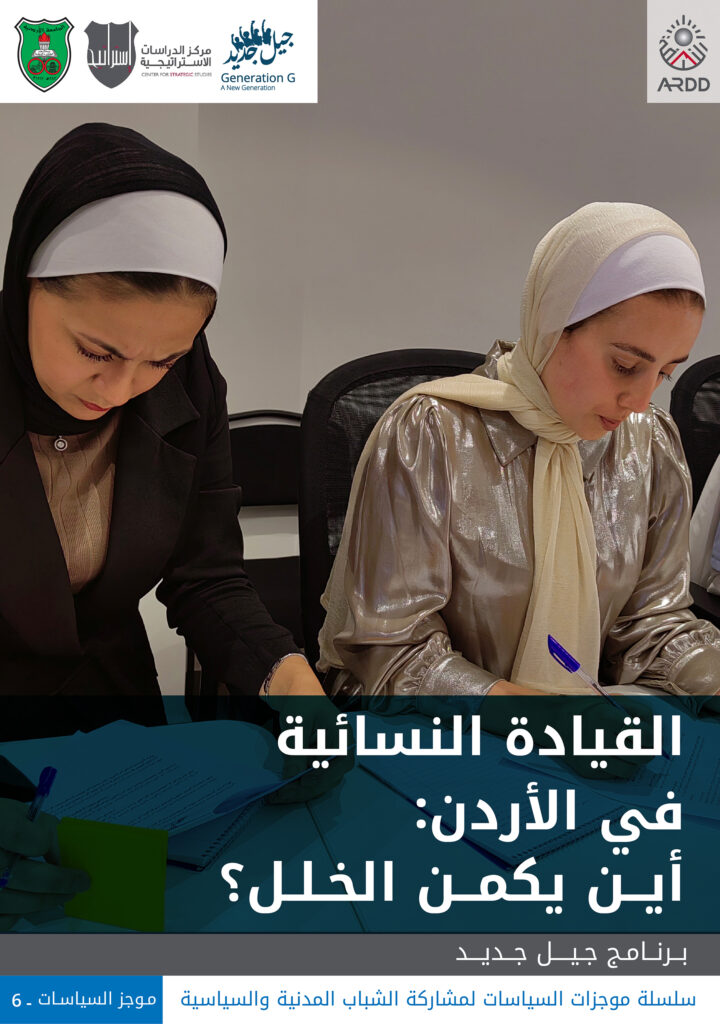 ينبثق موجز السياسات هذا عن مختبر سياسات مشاركة الشباب المدنية والسياسية، الذي نظمته منظمة النهضة العربية للديمقراطية والتنمية (أرض) بالشراكة مع مركز الدراسات الإستراتيجية في الجامعة الأردنية، ضمن برنامج “جيل جديد”، ويسلط الضوء على الجلسة السادسة من المختبر التي حملت عنوان “القيادة النسائية في الأردن :أين يكمن الخلل؟”، وما ناقشه عشرون طالبة وطالبًا من تخصصي العلوم السياسية والقانون في الجامعة الأردنية فيها. ووفقًا للمنهجية المتبعة في المختبر، تضمنت الجلسة شهادات مباشرة من الدكتورة عبلة أبو علبة، السياسية والأمين الأول لحزب الشعب الديمقراطي الأردني، وأدارتها الدكتورة أماني السرحان، أستاذة مشاركة في مركز دراسات المرأة في الجامعة الأردنية.