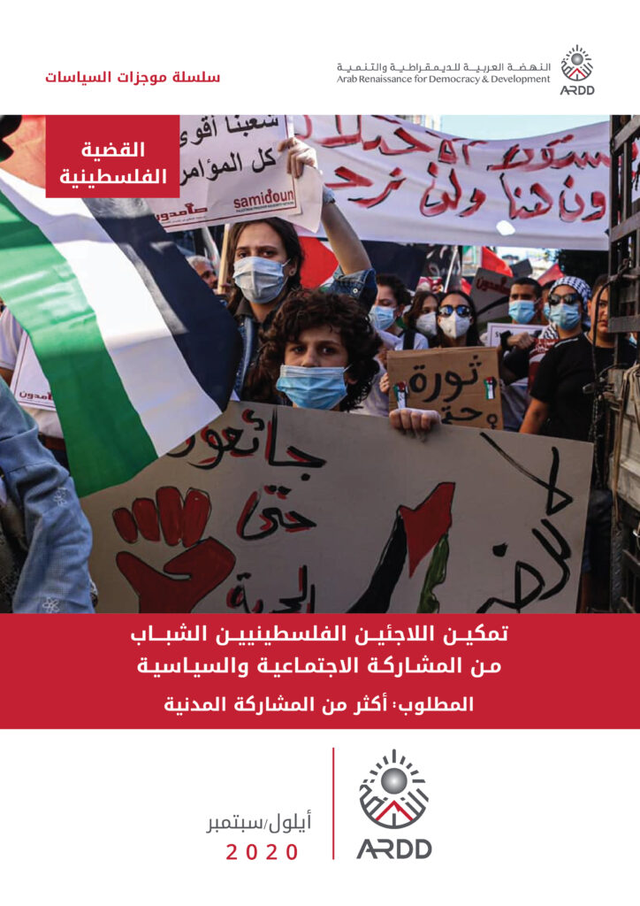 كما يستعرض الموجز شهادات الشباب والنتائج التي أبرزتها دراسة منظمة النهضة (أرض) بعنوان “أصوات اللاجئين الفلسطينيين الشباب في أنحاء الشرق الأدنى: المشاركة والتطلعات الاجتماعية والسياسية” والمبادرات القائمة في المنطقة. ويقترح خمس توصيات للتدخلات البرامجية تتمثل في: تعزيز وصول اللاجئين الفلسطينيين الشباب إلى العدالة، وتقوية فرصهم للمشاركة في الحوكمة العامة في مجتمعاتهم، والبناء على الفرص التي توفرها “المواطنة الشبكية” للشباب، بالإضافة إلى دعم إعادة تأهيل الهوية والتراث الثقافي الفلسطيني في أوساط اللاجئين الفلسطينيين الشباب والدول المضيفة، وتعزيز فرص التعليم الجيد بهدف الوصول إلى العمل اللائق. ويشدد الموجز كذلك على ضرورة جمع بيانات متخصصة للشباب، وتقديم الدعم النفسي والاجتماعي حسب الحاجة في كل البرامج.