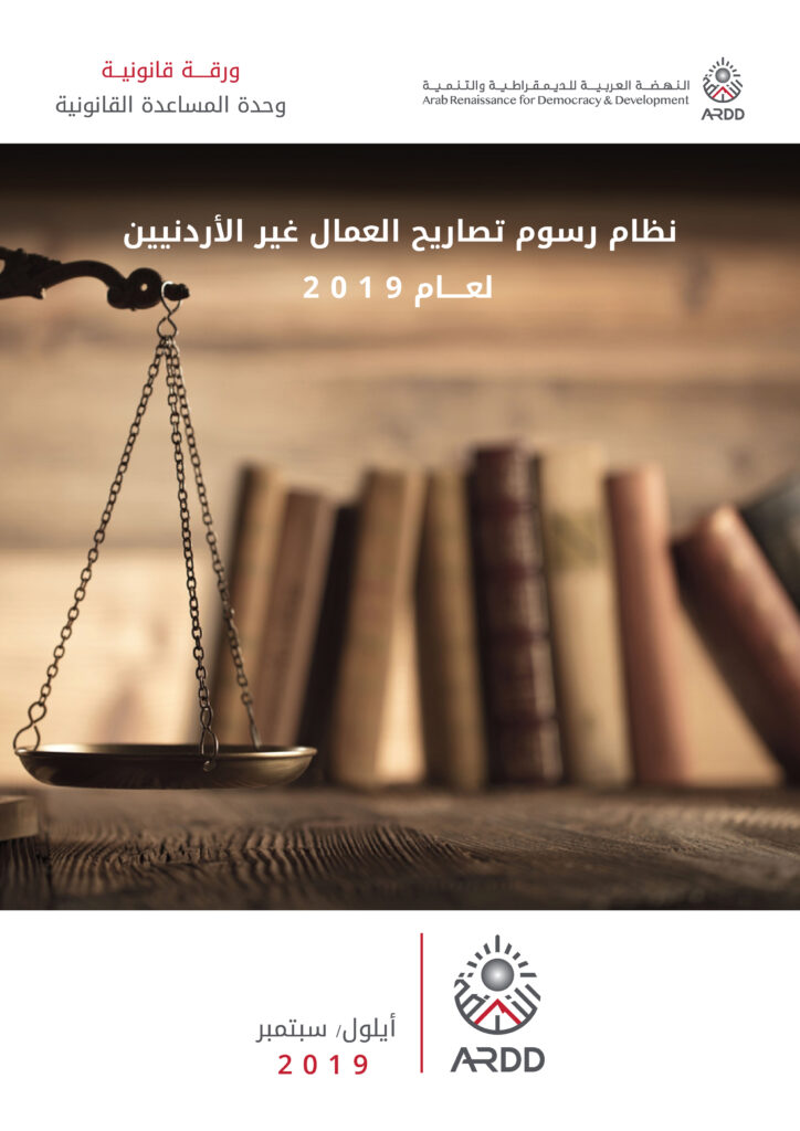 ومن ضمن مساعيها في هذا الصدد، توضيح الإجراءات القانونية والحقوق العمالية لغير الأردنيين وشروط العمل في الأردن، حيث عقدت دائرة المساعدة القانونية في منظمة النهضة (أرض) العديد من ورشات العمل التوعوية في العديد من مناطق المملكة لتوضيح أبرز وأهم النقاط التي تتعلق بتصاريح العمل.