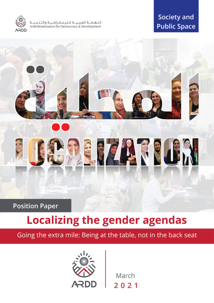 أطلقت منظمة النهضة العربية للديمقراطية والتنمية (أرض) ورقة موقف بعنوان “ضمان محلية الأجندات الجندرية” والتي تحث منظمات المجتمع المدني على قطع المسافة الإضافية للجلوس إلى طاولة القرار على جميع الأصعدة والمسائل التي تختارها فيما يخص هذه الأجندات، وبما يتناسب مع أولويات مجتمعاتها وسياقها المحلي والوطني، وعدم الاكتفاء بالمقاعد الخلفية ودور المنفذ فحسب.