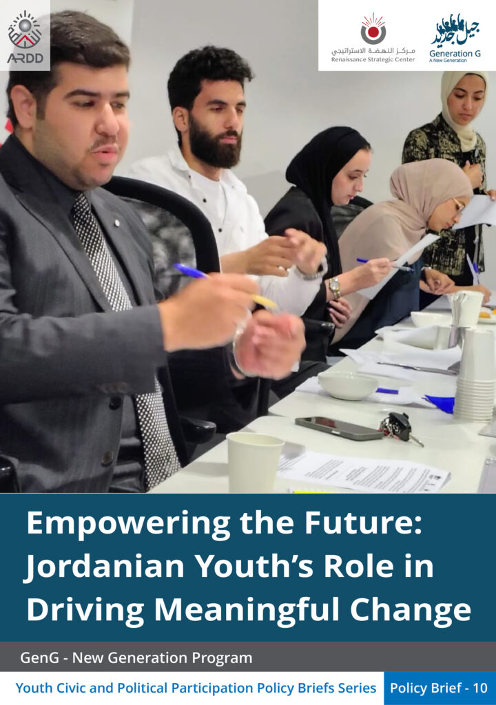 The brief is an output of the Youth Civic and Political Participation Policy Labs, conducted by the Arab Renaissance and Democracy (ARDD) as part of the New Generation Program. It highlights the session titled “Empowering the Future: Jordanian Youth’s Role in Driving Meaningful Change,” and what political science and law students from the University of Jordan discussed regarding this matter. Following the labs’ work methodology, the session featured Dr. Mohammad Jreibi, Director of the Thuraya Center for Studies.